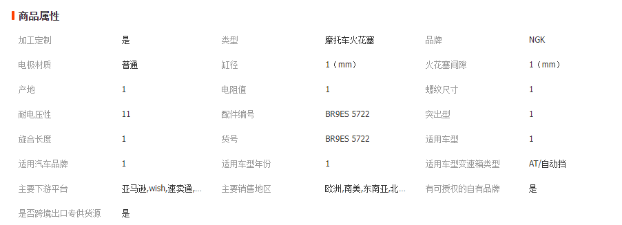 本网页所展示的有关【NGK火花塞 BR9ES 5722 两冲程9度卡丁车动力伞船外机越野摩托车艇_火花塞_厦门市湖里区博格众思汽车配件商行】的信息/图片/参数等由全球零部件网的会员【厦门市湖里区博格众思汽车配件商行】提供,由全球零部件网会员【厦门市湖里区博格众思汽车配件商行】自行对信息/图片/参数等的真实性、准确性和合法性负责,本平台(本网站)仅提供展示服务,请谨慎交易,因交易而产生的法律关系及法律纠纷由您自行协商解决,本平台(本网站)对此不承担任何责任。您在本网页可以浏览【NGK火花塞 BR9ES 5722 两冲程9度卡丁车动力伞船外机越野摩托车艇_火花塞_厦门市湖里区博格众思汽车配件商行】有关的信息/图片/价格等及提供【NGK火花塞 BR9ES 5722 两冲程9度卡丁车动力伞船外机越野摩托车艇_火花塞_厦门市湖里区博格众思汽车配件商行】的商家公司简介、江南(中国)等信息。