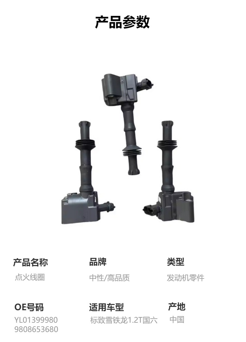 本网页所展示的有关【YL01399980 9808653680点火线圈适用于标致 雪铁龙 国六1.2T_点火线圈_武汉超驰优达贸易有限公司】的信息/图片/参数等由全球零部件网的会员【武汉超驰优达贸易有限公司】提供,由全球零部件网会员【武汉超驰优达贸易有限公司】自行对信息/图片/参数等的真实性、准确性和合法性负责,本平台(本网站)仅提供展示服务,请谨慎交易,因交易而产生的法律关系及法律纠纷由您自行协商解决,本平台(本网站)对此不承担任何责任。您在本网页可以浏览【YL01399980 9808653680点火线圈适用于标致 雪铁龙 国六1.2T_点火线圈_武汉超驰优达贸易有限公司】有关的信息/图片/价格等及提供【YL01399980 9808653680点火线圈适用于标致 雪铁龙 国六1.2T_点火线圈_武汉超驰优达贸易有限公司】的商家公司简介、江南(中国)等信息。