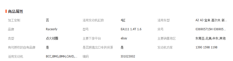 本网页所展示的有关【适用于大众奥迪斯柯达EA111高性能点火线圈036905715H 036905715_点火线圈_广州艾玛乐贸易有限公司】的信息/图片/参数等由全球零部件网的会员【广州艾玛乐贸易有限公司】提供,由全球零部件网会员【广州艾玛乐贸易有限公司】自行对信息/图片/参数等的真实性、准确性和合法性负责,本平台(本网站)仅提供展示服务,请谨慎交易,因交易而产生的法律关系及法律纠纷由您自行协商解决,本平台(本网站)对此不承担任何责任。您在本网页可以浏览【适用于大众奥迪斯柯达EA111高性能点火线圈036905715H 036905715_点火线圈_广州艾玛乐贸易有限公司】有关的信息/图片/价格等及提供【适用于大众奥迪斯柯达EA111高性能点火线圈036905715H 036905715_点火线圈_广州艾玛乐贸易有限公司】的商家公司简介、江南(中国)等信息。