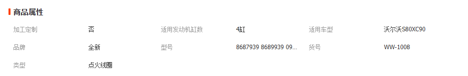 本网页所展示的有关【适用于沃尔沃S80XC90 点火线圈高压包8687939 8689939 0997000890_点火线圈_广州源三亦汽车配件贸易有限公司】的信息/图片/参数等由全球零部件网的会员【广州源三亦汽车配件贸易有限公司】提供,由全球零部件网会员【广州源三亦汽车配件贸易有限公司】自行对信息/图片/参数等的真实性、准确性和合法性负责,本平台(本网站)仅提供展示服务,请谨慎交易,因交易而产生的法律关系及法律纠纷由您自行协商解决,本平台(本网站)对此不承担任何责任。您在本网页可以浏览【适用于沃尔沃S80XC90 点火线圈高压包8687939 8689939 0997000890_点火线圈_广州源三亦汽车配件贸易有限公司】有关的信息/图片/价格等及提供【适用于沃尔沃S80XC90 点火线圈高压包8687939 8689939 0997000890_点火线圈_广州源三亦汽车配件贸易有限公司】的商家公司简介、江南(中国)等信息。