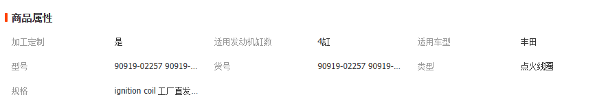 本网页所展示的有关【ignition coil 工厂直发丰田点火线圈 90919-02256 90919-02250_点火线圈_广州优耐雅商贸有限公司】的信息/图片/参数等由全球零部件网的会员【广州优耐雅商贸有限公司】提供,由全球零部件网会员【广州优耐雅商贸有限公司】自行对信息/图片/参数等的真实性、准确性和合法性负责,本平台(本网站)仅提供展示服务,请谨慎交易,因交易而产生的法律关系及法律纠纷由您自行协商解决,本平台(本网站)对此不承担任何责任。您在本网页可以浏览【ignition coil 工厂直发丰田点火线圈 90919-02256 90919-02250_点火线圈_广州优耐雅商贸有限公司】有关的信息/图片/价格等及提供【ignition coil 工厂直发丰田点火线圈 90919-02256 90919-02250_点火线圈_广州优耐雅商贸有限公司】的商家公司简介、江南(中国)等信息。