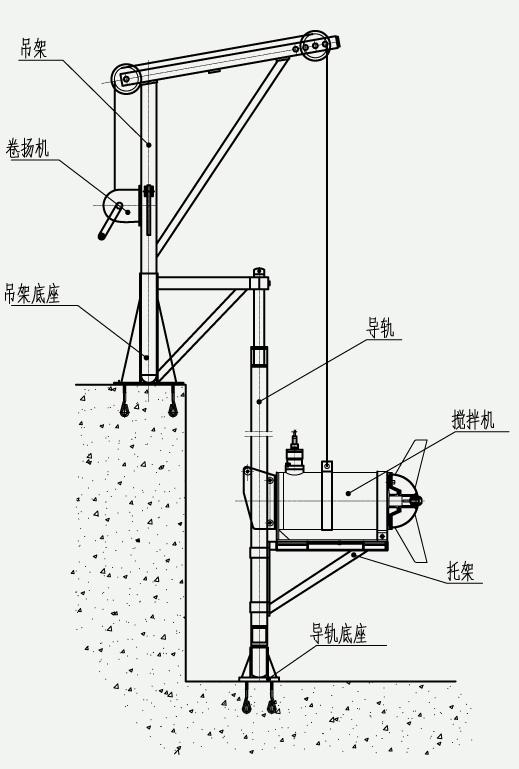 5、为便于检修潜水搅拌器,需安装提升系统,包括导轨、提升索、水上提升支架和电缆固