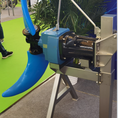 低速推流器适用于工业和城市污水处理厂曝气池和厌氧池,其产生低切向流的强力水流,可用于池中水循环及硝化、脱氮和除磷阶段创建水流等。潜水搅拌机的选型是一项比较复杂的工作,选型方案的正确与否直接影响到设备的正常使用,作为选型的原则就是要让搅拌机在适合的容积里发挥充分的搅拌功能,这个标准一般可用流速来确定。根据污水处理厂的不同工艺要求,潜水推流器选型的流速保证在0.15~0.3m/s之间,如果低于0.15m/s的流速则达不到推流搅拌的效果,如果超过0.3m/s的流速则会影响工艺效果且造成浪费。所以在选型前,要确定潜水推流器运用在什么场所,如:污水池、污泥池还是生化池;其次是介质参数,如:悬浮物含量、温度、PH值等;还有水池的形状,水深甚至安装方式等都将对选型产生影响,考虑到节能因素,影响到用户今后运行成本。搅拌机所需配套功率是按容积大小、搅拌液体密度和搅拌深度而确定,根据具体情况采用一台或多台推流器。