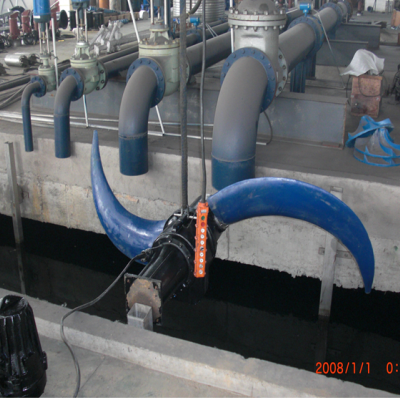 潜水推流器的螺旋桨设计成自清洁、无堵塞的形式,整体铸造两片叶片式或者三叶片式。螺旋桨为适应水的流态优化设计,可防止污水中纤维物的缠绕。叶轮上应采用橡胶保护环来保护机械密封,防止污物进入机械密封腔。