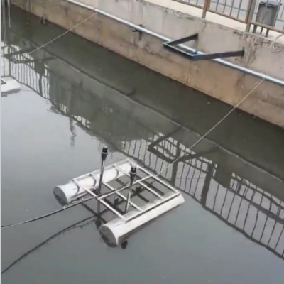 强力造流曝气机有漂浮式和沉水式两种安装方式,不需要专用的安装基础,根据需要灵活选用。如采用漂浮式安装方式,不论从安装、维护和日常管理上,都是十分便利的。