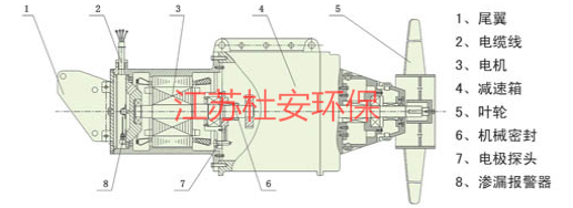 (1) 污水推进器的设计:推流器可上下升降,方便移动,检查或维修无需人员进入湿井。推进器,附件和电缆可在20米水深持续潜没工作,不会发生泄漏。
