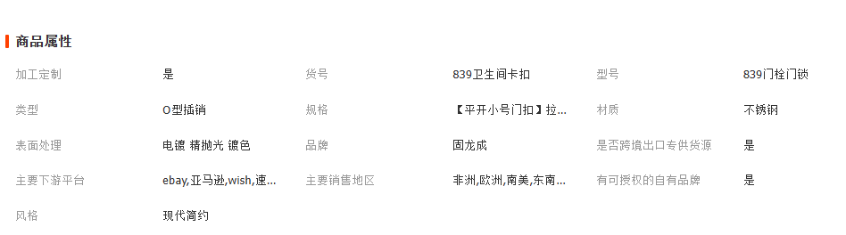本网页所展示的有关【明装插销不锈钢老式门搭扣免打孔防盗门扣门栓门锁移门卫生间卡扣_插销_广州乐亿嘉五金有限公司】的信息/图片/参数等由全球零部件网的会员【广州乐亿嘉五金有限公司】提供,由全球零部件网会员【广州乐亿嘉五金有限公司】自行对信息/图片/参数等的真实性、准确性和合法性负责,本平台(本网站)仅提供展示服务,请谨慎交易,因交易而产生的法律关系及法律纠纷由您自行协商解决,本平台(本网站)对此不承担任何责任。您在本网页可以浏览【明装插销不锈钢老式门搭扣免打孔防盗门扣门栓门锁移门卫生间卡扣_插销_广州乐亿嘉五金有限公司】有关的信息/图片/价格等及提供【明装插销不锈钢老式门搭扣免打孔防盗门扣门栓门锁移门卫生间卡扣_插销_广州乐亿嘉五金有限公司】的商家公司简介、江南(中国)等信息。