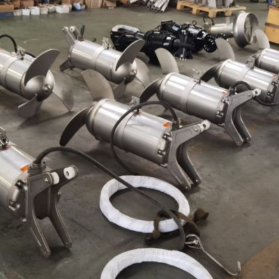 潜水搅拌机桨叶材质的选择应重点从刚性和耐磨寿命方面考虑。螺旋桨和轮毂整体在工厂内经G6.3级动平衡检验合格。