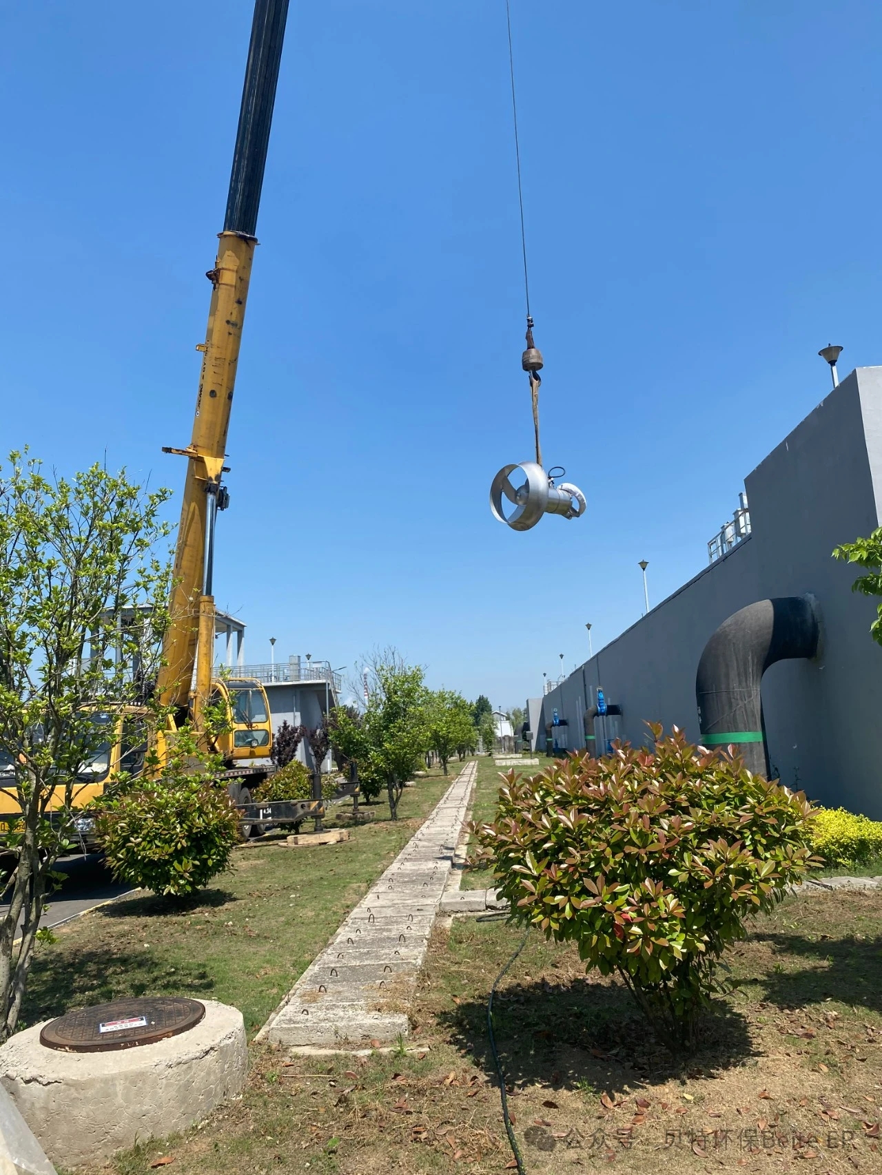 (11)安装潜水搅拌机根据潜水搅拌机所在水池的尺寸、安装条件及设备性能要求复核搅拌器的具体位置,确定潜水搅拌机的功率、叶轮直径、转速、安装高度、安装角度等。