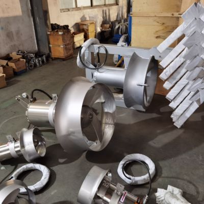 每台潜水搅拌机整体设计,封闭式连接,潜水型。潜水搅拌机所有的组件包括电机可在水下连续运转。与液体接触的搅拌机主要构件是不锈钢S304。潜水搅拌机主件的密封设计是金属与金属接触。需要防水密封的临界接触面应是机械加工,并嵌入两组腈或氟化橡胶O-型圈。