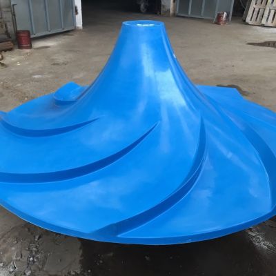 *e.涡轮式叶轮为圆锥体双曲面形、半开式、锥面上带有导流肋的形式,叶轮与立轴之间装有锁定装置,防转动时松动。叶轮转动时能自我纠位,确保向下力垂直,防止产生不平衡运动。
