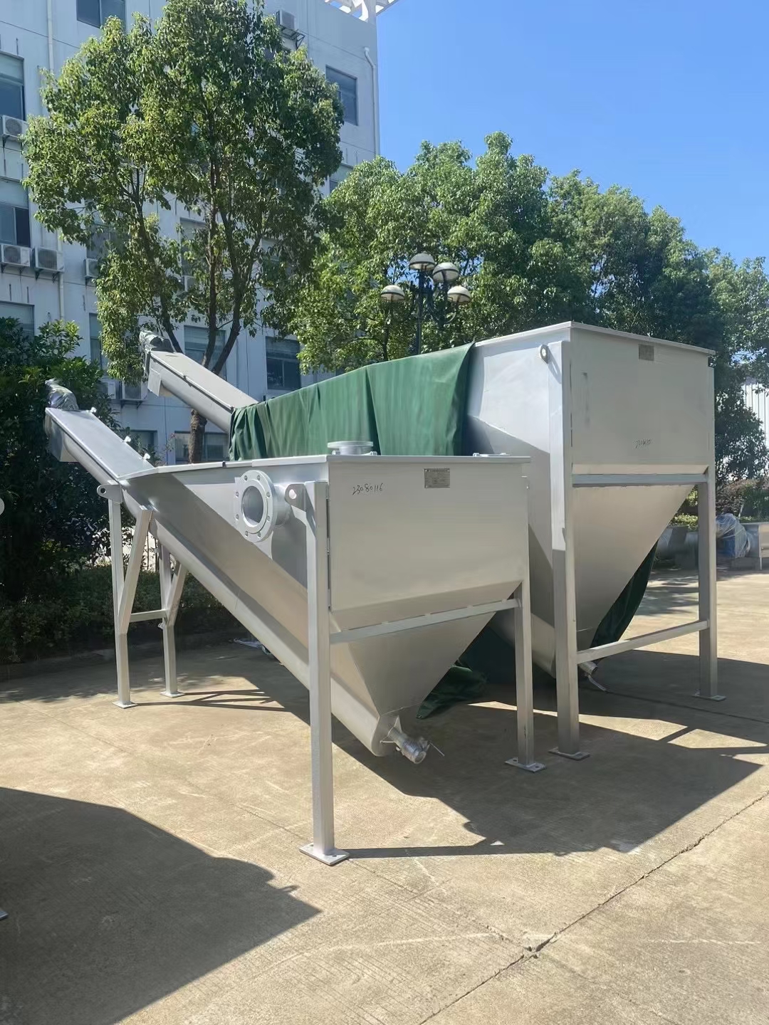 砂水分离器是沉砂池除砂系统的配套设备,由沉淀斗、无轴螺旋轴、U型螺旋槽、水箱、导流板等组成,可以将从沉砂池排出的砂水混合物进行砂水分离,便于运输。