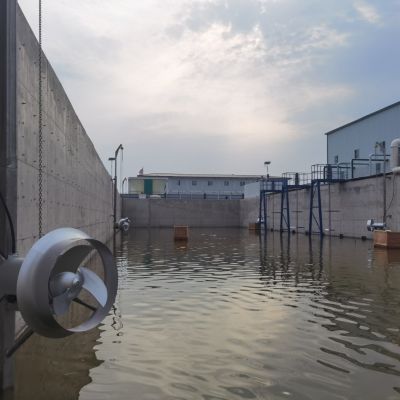 每台潜水搅拌机能在污水中工作,推动污水的流动。