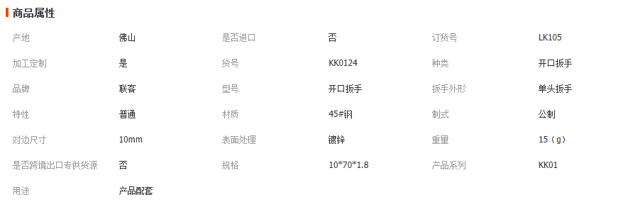 本网页所展示的有关【厂家批发 冲压一次性开口小扳手批发10*70*1.8镀锌防锈_扳手类_佛山市联客五金制品有限公司】的信息/图片/参数等由全球零部件网的会员【佛山市联客五金制品有限公司】提供,由全球零部件网会员【佛山市联客五金制品有限公司】自行对信息/图片/参数等的真实性、准确性和合法性负责,本平台(本网站)仅提供展示服务,请谨慎交易,因交易而产生的法律关系及法律纠纷由您自行协商解决,本平台(本网站)对此不承担任何责任。您在本网页可以浏览【厂家批发 冲压一次性开口小扳手批发10*70*1.8镀锌防锈_扳手类_佛山市联客五金制品有限公司】有关的信息/图片/价格等及提供【厂家批发 冲压一次性开口小扳手批发10*70*1.8镀锌防锈_扳手类_佛山市联客五金制品有限公司】的商家公司简介、江南(中国)等信息。